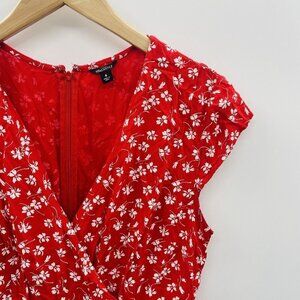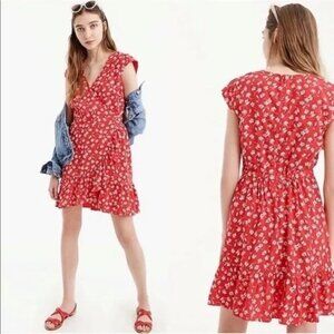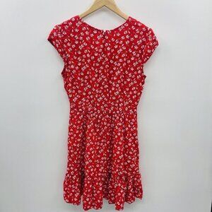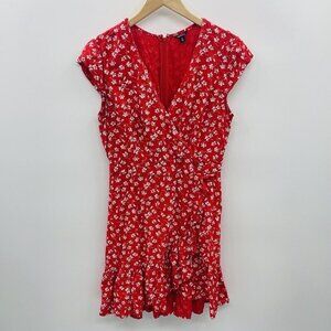 J Crew Mercantile Womens Size 4 V Neck Ruffle Floral A Line Dress in Red J4401