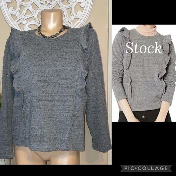 J Crew Mercantile women’s grey ruffle sweatshirt top size L 12 14