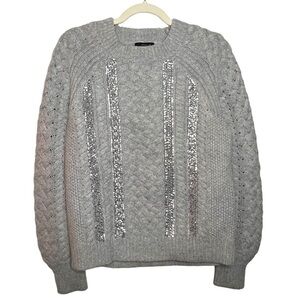 J. Crew Merino Wool Blend Cable Knit Sequin Sweater Heather Dusk Grey Size Small