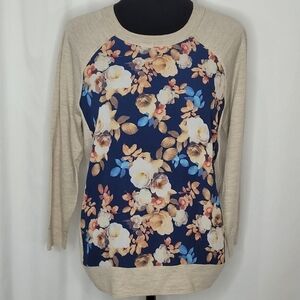 J Crew Merino Wool Floral Silk Panel 3/4 Sleeve Lightweight Sweater Top - Size M