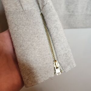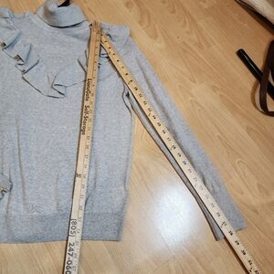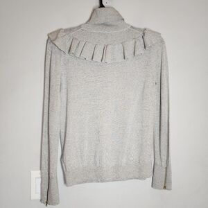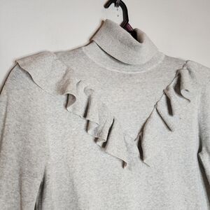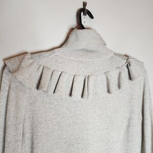J. Crew Merino Wool Grey Turtleneck Ruffle Sweater Zip Cuffs Size Medium