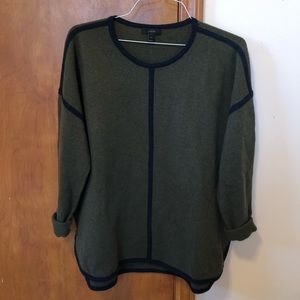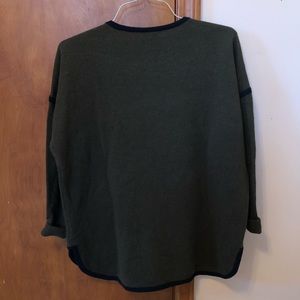 Forest green w/ navy trim, roomy fit, worn only once or twice and in perfect condition