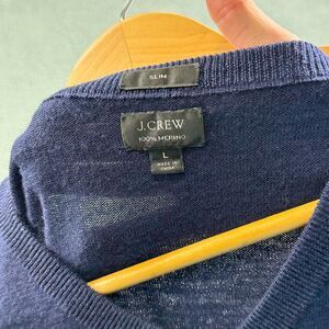 Keywords/Tags: J Crew merino wool sweater, navy slim fit v-neck, men’s large wool pullover, J Crew 100% merino sweater, office casual wool knit, dark navy blue merino, J Crew men’s slim sweater