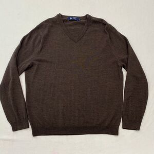 J Crew Merino Wool Sweater Mens XL Brown V Neck Pullover Classic Minimalist