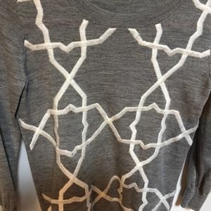 J. Crew gray and white pullover sweater. White design is raised embroidery.