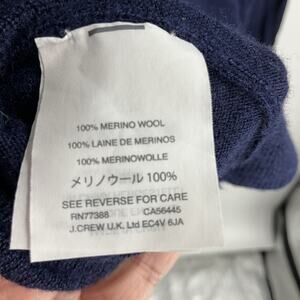 The J. Crew Merino Wool V-neck Long Sleeve Top Blouse Sweater is a stylish and versatile piece for women. Made from 100% Merino Wool, it offers warmth and sophistication. The V-neck design and long sleeves make it perfect for casual, business, or travel occasions. In a classic blue color with a subtle bow accent, this sweater from J.CREW is a regular fit pullover style that is sure to become a staple in any woman's wardrobe.