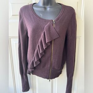 J Crew Merino Wool Ruffle Moto Sweater Exposed Zip Closure S Chocolate