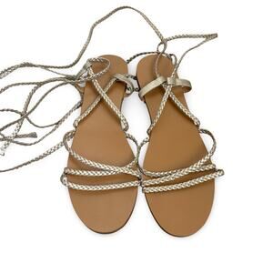 J Crew Metallic Gold Gladiator Leather Braided Strap Flat Sandals Size 9