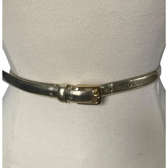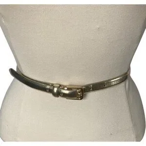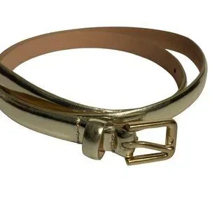 J Crew Metallic Gold Skinny Leather Belt Womens Small Classic Preppy Evening