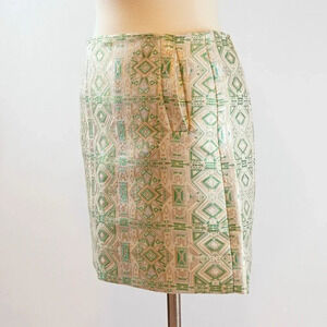 J. Crew Metallic Green Gold Brocade Mini Skirt