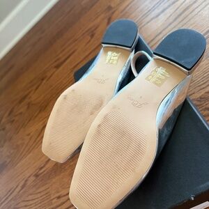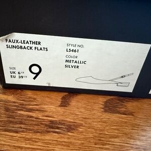 Beautiful J Crew faux leather metallic silver slingback flats. Size 9.