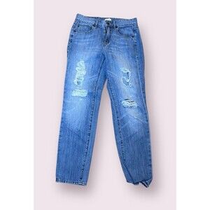 J. Crew Mid Women's Size 24 Rise Distressed Straight Leg Denim Blue Jeans