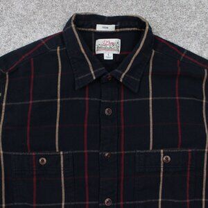J. Crew Mid-Weight Flannel Shirt Men Large Blue/Red/Yellow Double Brushed Slim