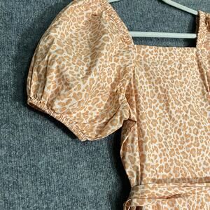 J. Crew Midi Cottage Dress XXS Leopard Print Puff Short Sleeve Button Up A-Line