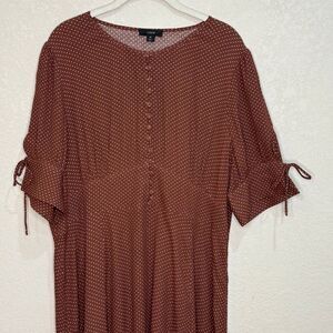 J. Crew Midi Dress Size 18 Drapey Button-Up in Polka Dot Color Sable
