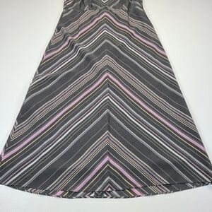 J. Crew Spaghetti Strap V-Neck A-Line Midi Dress in Multicolor Gray with Pink, Yellow, White Chevron Geometric Pattern