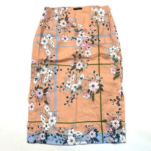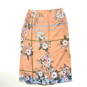 J Crew Midi Slip Skirt Melon Grid Floral Size 4 L7538