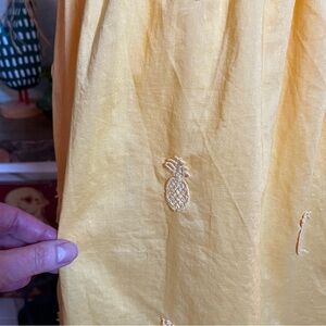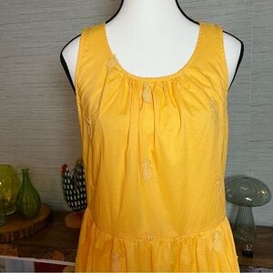J Crew Mini Dress Size 10 Embroidered Pineapple Fit and Flare Yellow Cotton