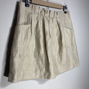 J Crew Mini Skirt Women 2 (29) Satin Linen Blend Pockets Preppy Minimalist Beach