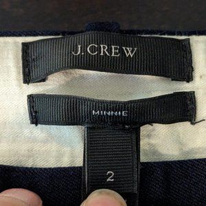 J. Crew Minnie flat-front stretch twill pant, size 2, navy blue, side zip. Skinny and cropped dress pant suitable for work.