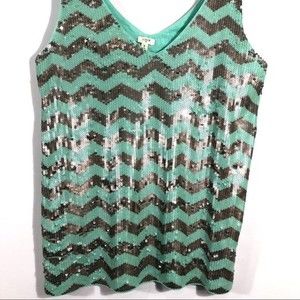 J. Crew Mint & Pewter Silver Chevron Sequin Tank.
