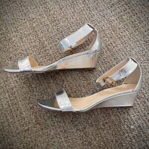 J. Crew Mirror Lillian Silver Metallic Wedge Sandals 6.5M