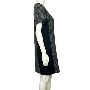 J Crew Mixed Houndstooth Tweed and Leather Black Gray Dress Sz 8