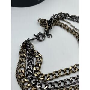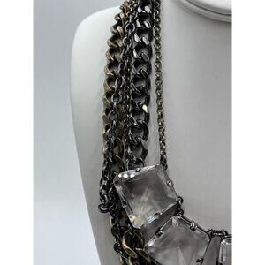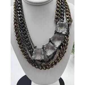 J.Crew, heavy mixed metal and glass statement necklace. Gold, Gunmetal, and chrome toned chains.
