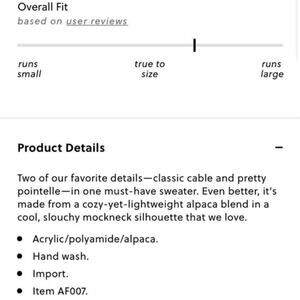 J. Crew Mock Neck Fisherman Cable Knit Lightweight Alpaca Wool Sweater Top XS