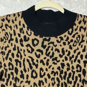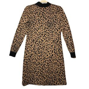 J. Crew MockNeck Sweater Dress Leopard Knit Pullover Merino Wool Blend Women XS