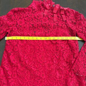 J. Crew Mockneck Floral Red Lace Top Sz 2 Preppy Holiday Party