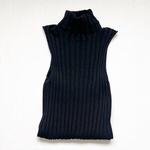 ❤️ J Crew Mockneck sweater-tank Black Ribbed Stretchy Medium wool blend office