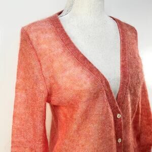 J. Crew Mohair Soufflé Cardigan Knit Pink Semi Sheer