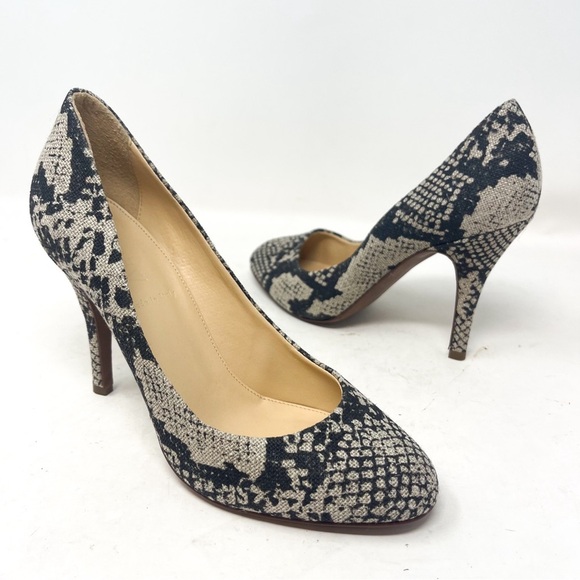 J. Crew Mona Snakeskin Linen Fabric Textile Round Toe Pumps Heels Womens Shoes 7