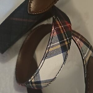 J Crew Moon Plaid Genuine Leather Belt sz 34 Brass hardware Pre-owned