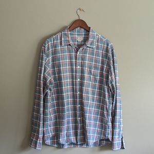Tailored by J.Crew; blue gray plaid shirt. Size large. Made of 100% cotton. 29”long; 22” armpit to armpit.