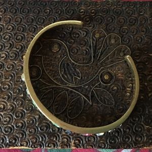 J Crew brushed brass colored bangle bracelet with multi colored rhinestones made to resemble genuine gemstones, is just so pretty!