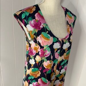 Chic floral tank top with vibrant colors. Sleeveless design. Ideal for casual outings.