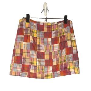 J. Crew Multicolor Madras Quilt Style Patchwork Cotton Mini Skirt Women Sz 2