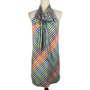 J. Crew Multi-color Plaid Halter Sleeveless Tie Mini Dress Size 2