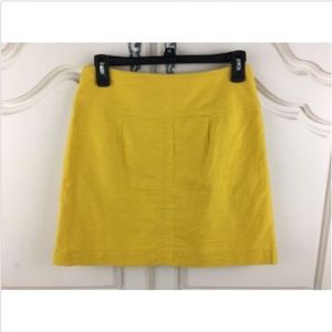 J. Crew Mustard Yellow Linen Blend Twill Career Skirt Front Pockets Size 0