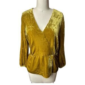 J. Crew Mustard Yellow Velvet V-Neck Blouse Top Women's Size 4