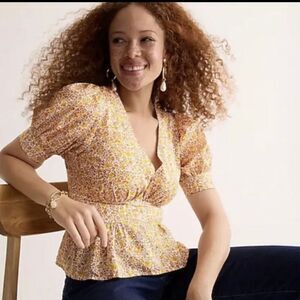 J. Crew NWOT Puff Sleeve V-neck Top in Scattered Blooms Print Sz 6