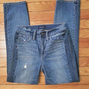 J Crew NWOT "Sample" High Waist VTG Straight Two-Toned Panels Distressed Sz 25