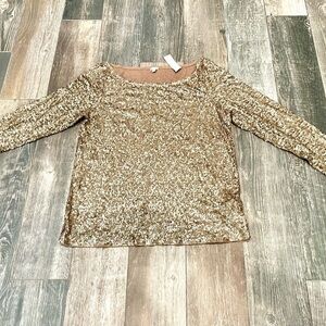 J Crew NWT $89.50 Sequined Boatneck Top Blouse Bronze | Sz L