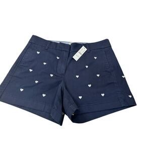 J. Crew NWT Chino Embroidered Hearts Shorts Sz 6 Blue White Mid Rise Streetwear