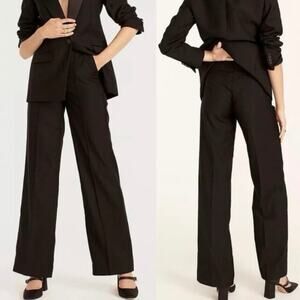 J. Crew NWT Collection Full Length Wide Leg Black Tuxedo 100% Italian Wool pants