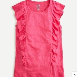 In a lightweight super breathable linen featuring pretty ruffles down the front.