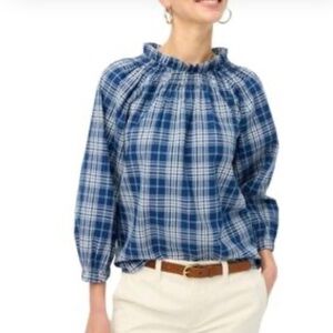 J. Crew NWT Navy Plaid Ruffle Blouse
