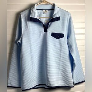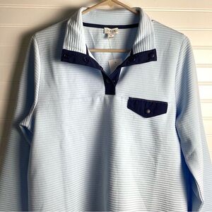 J. Crew NWT Quilted snap-front pullover Blue Top with Dark Blue Breeze Size Medium